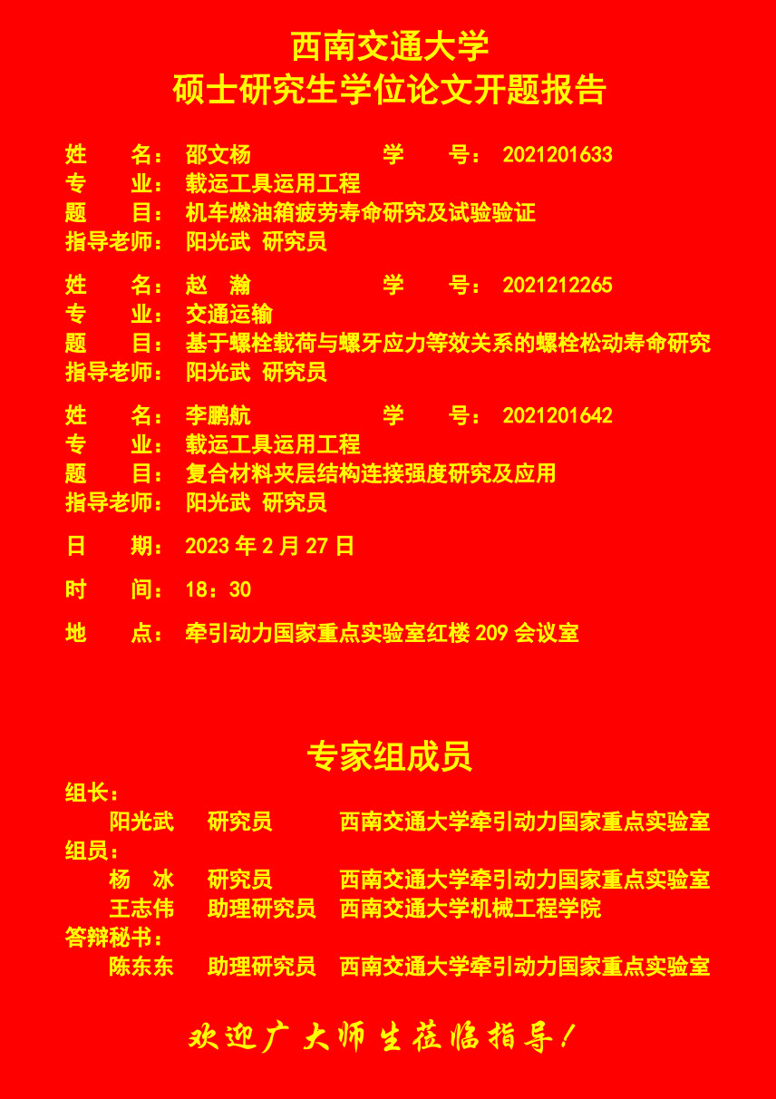 西南交通大学邵文杨、赵瀚、李鹏航硕士研究生开题报告