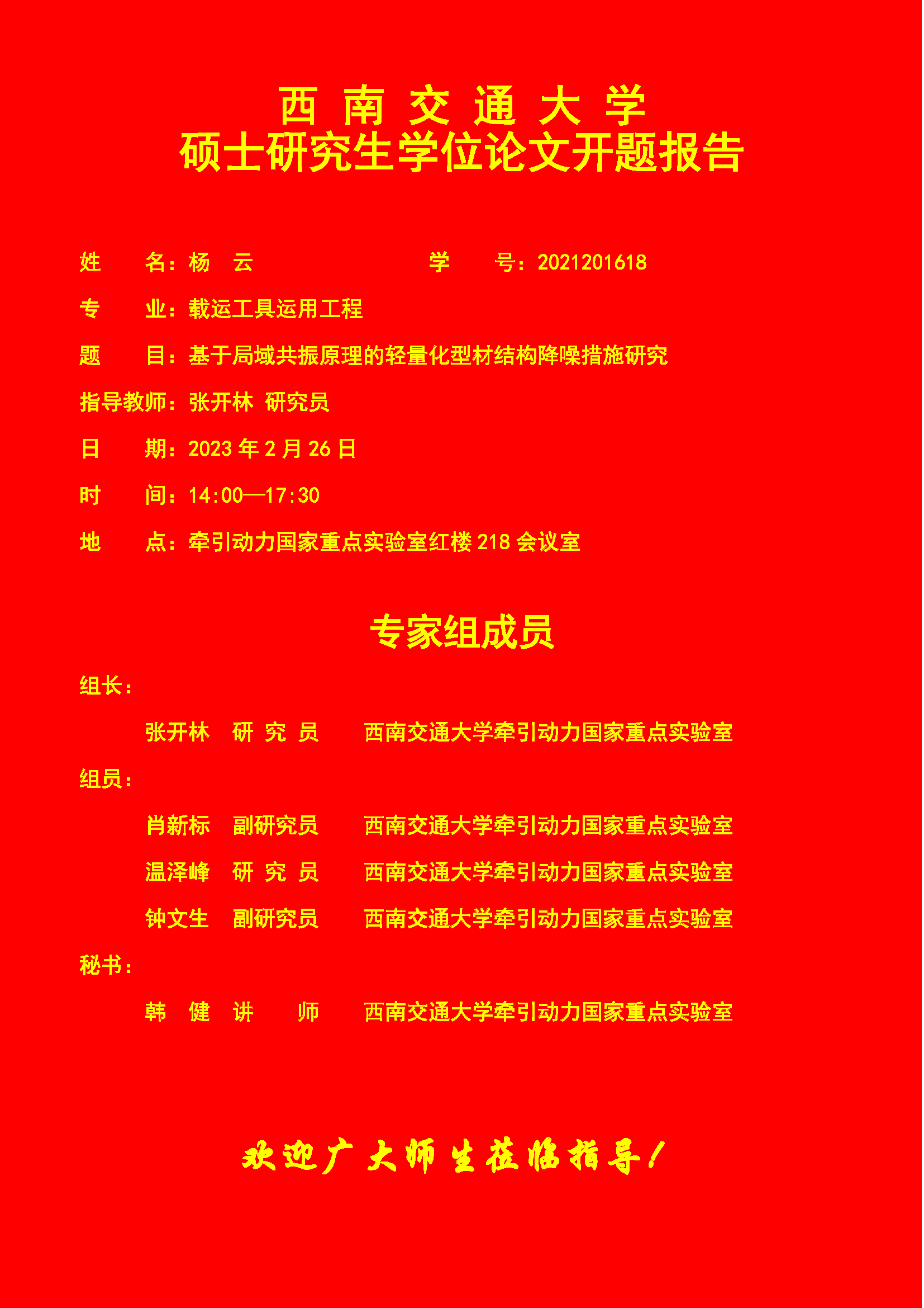 西南交通大学杨云硕士研究生开题报告