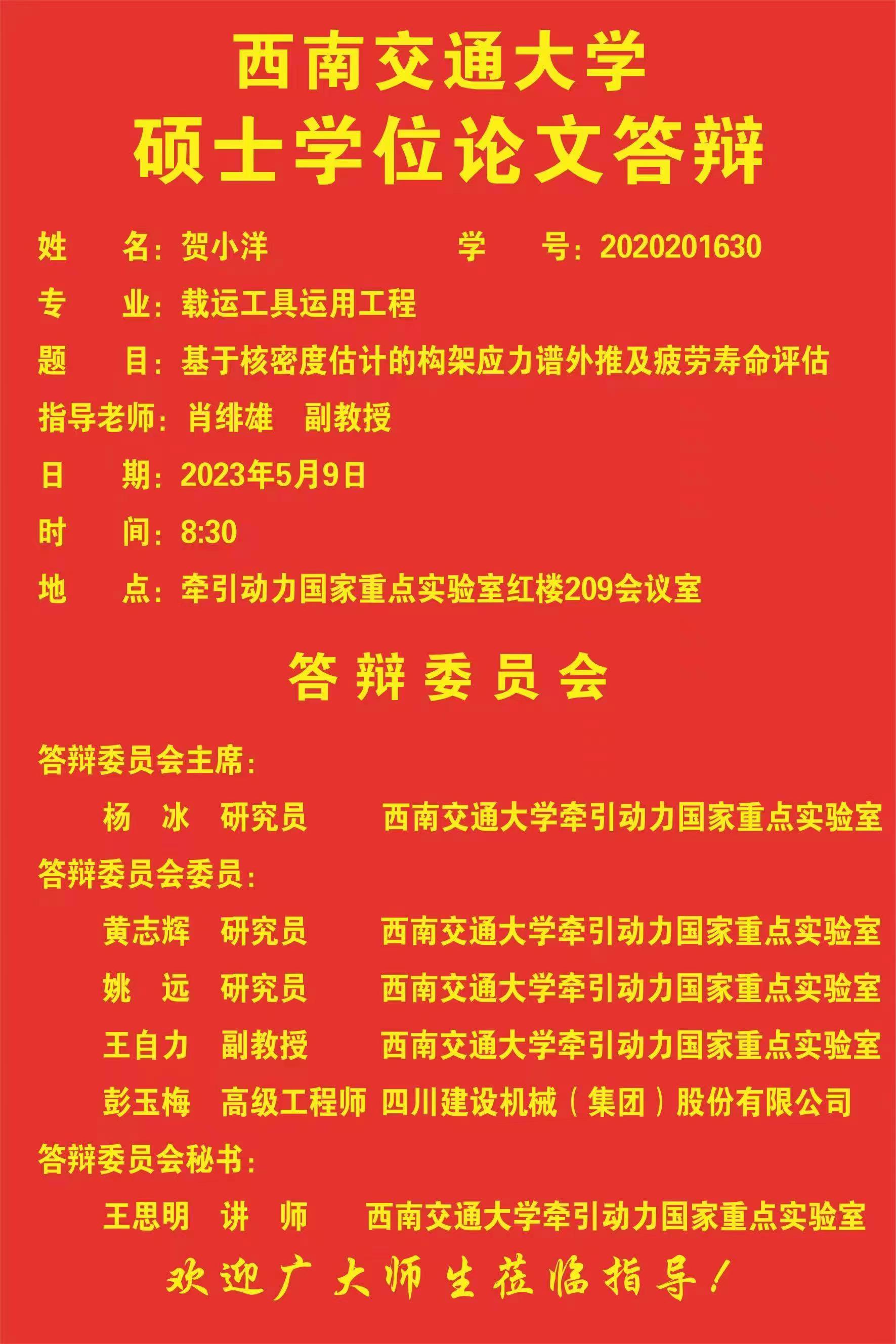 西南交通大学贺小洋硕士学位论文答辩