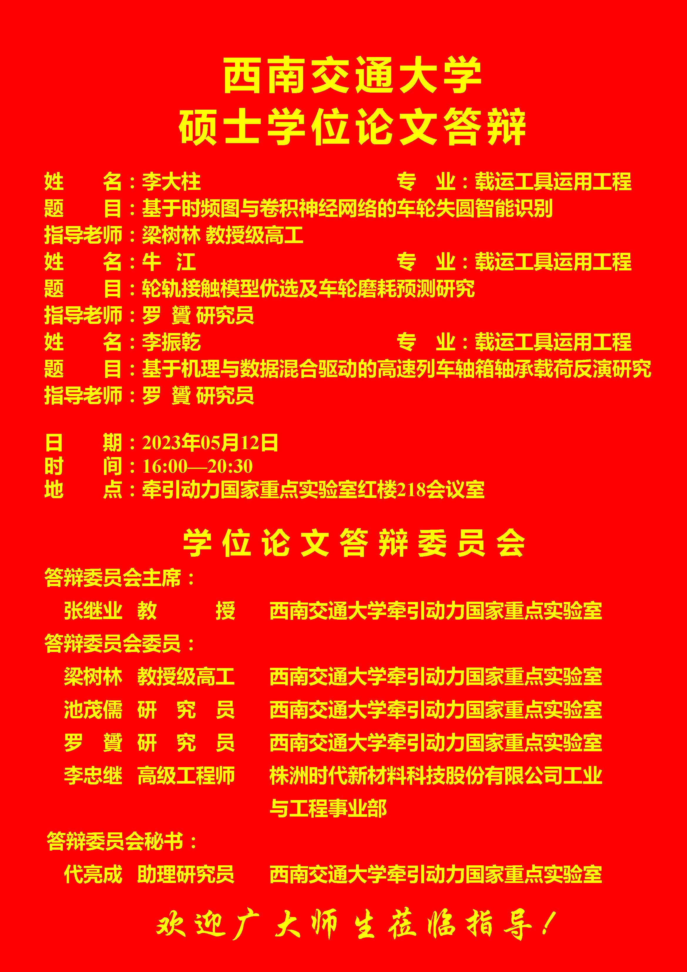 西南交通大学李大柱、牛江、李振乾硕士学位论文答辩