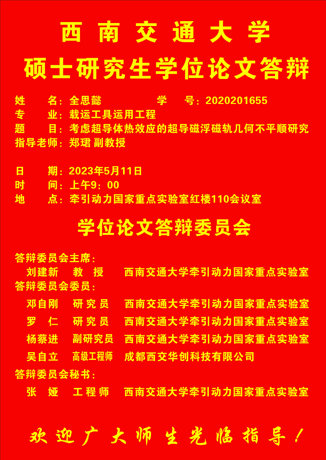 西南交通大学全思懿硕士学位论文答辩