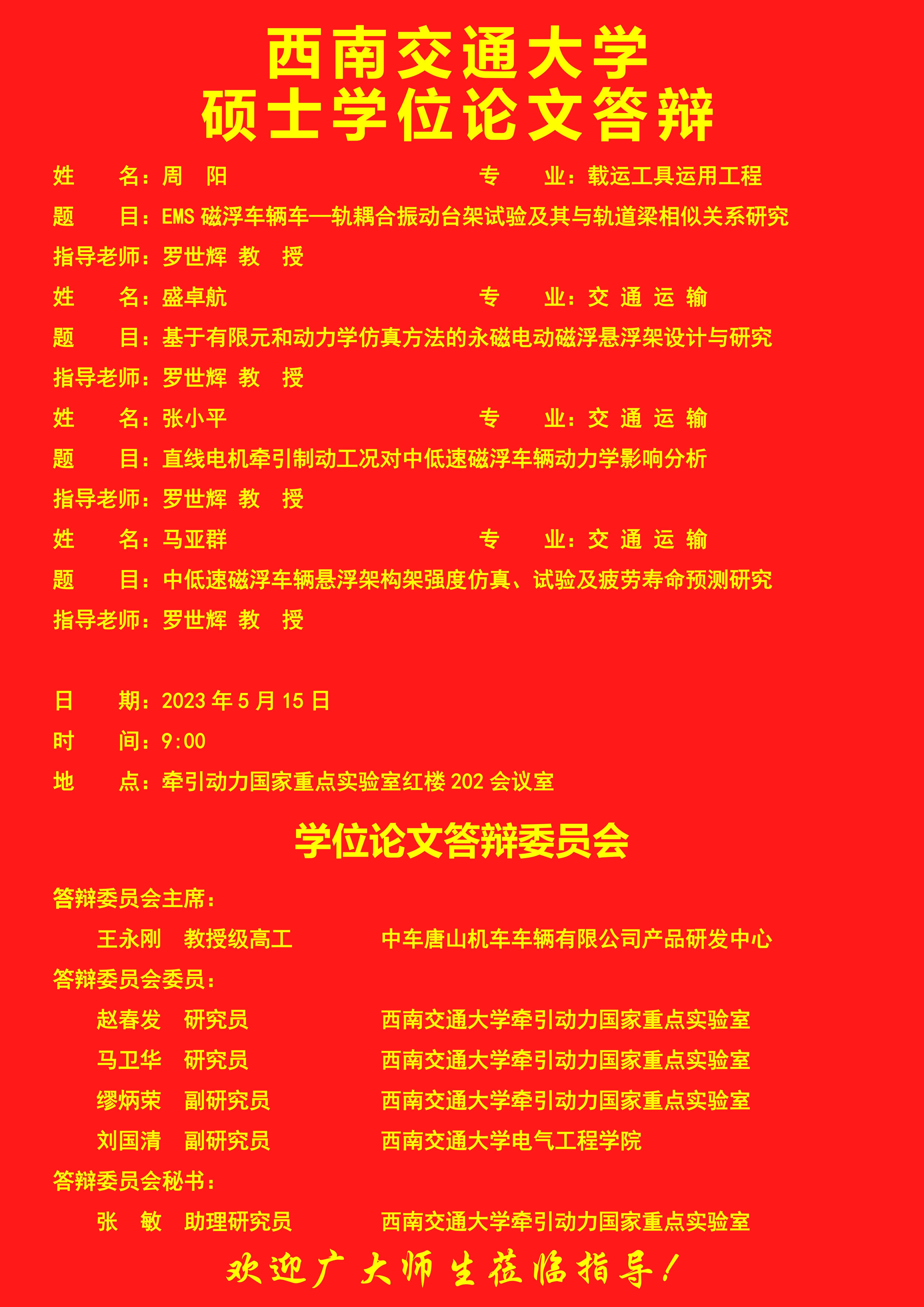 西南交通大学周阳、马亚群、盛卓航、张小平硕士学位论文答辩