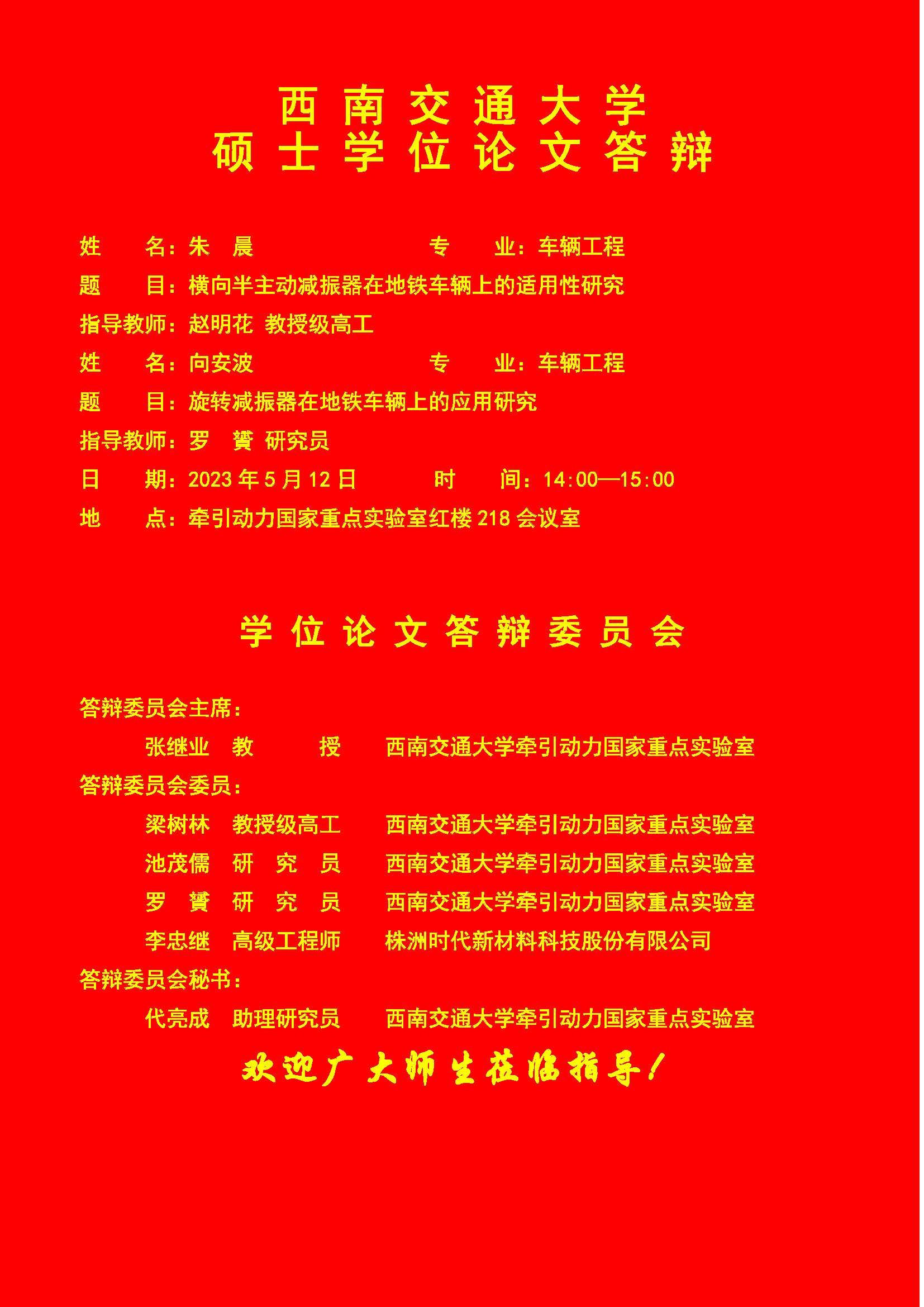 西南交通大学朱晨、向安波硕士学位论文答辩