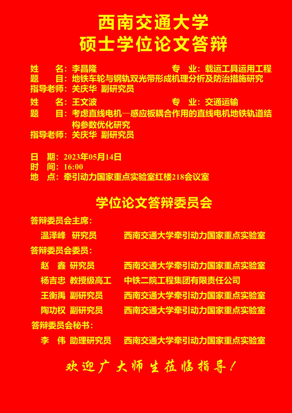 西南交通大学李昌隆、王文波硕士学位论文答辩