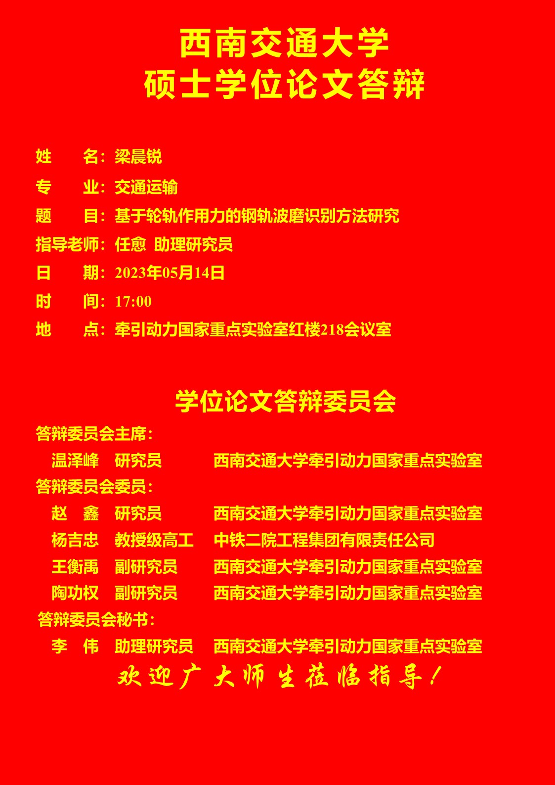 西南交通大学梁晨锐硕士学位论文答辩