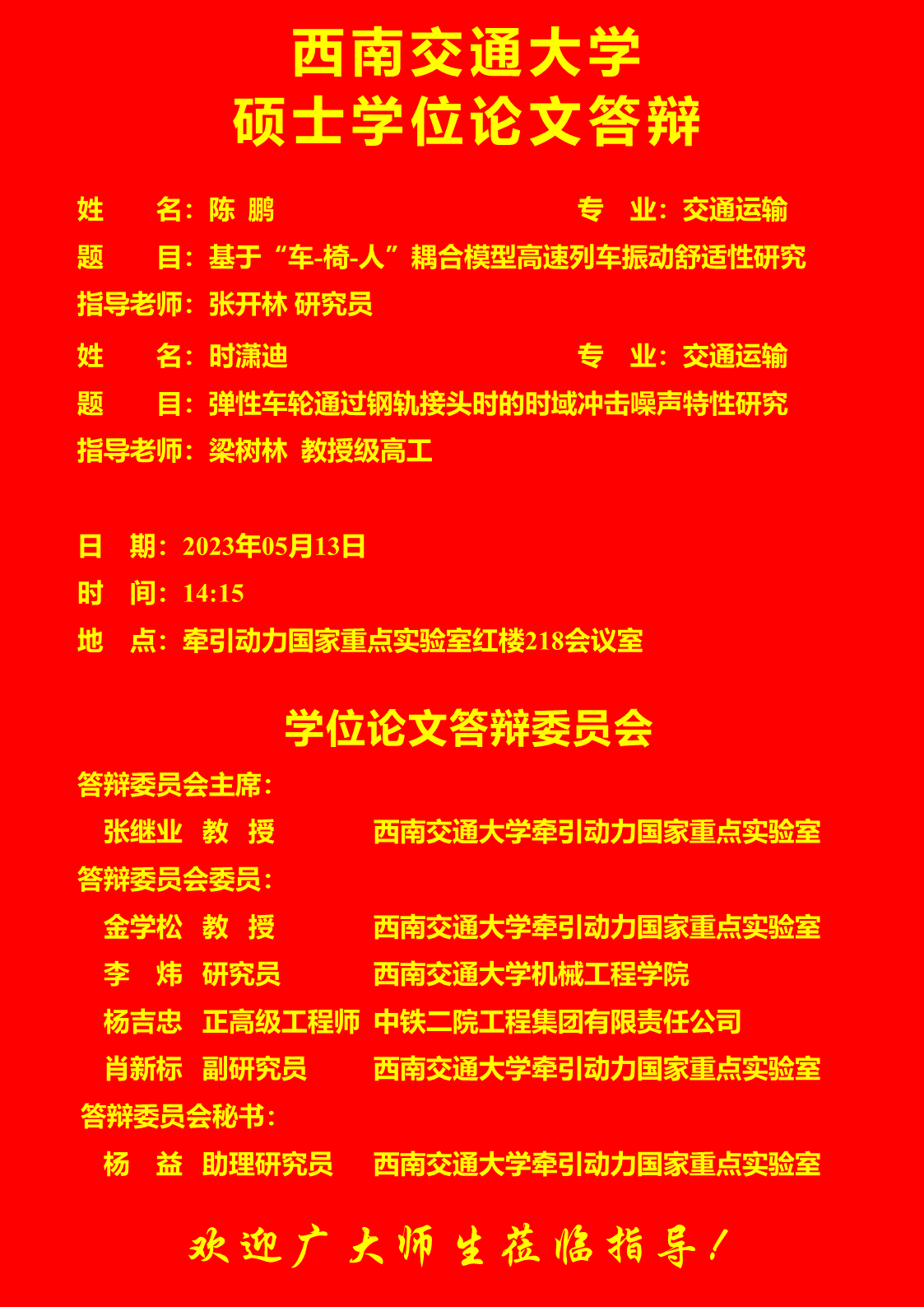 西南交通大学时潇迪、陈鹏硕士学位论文答辩