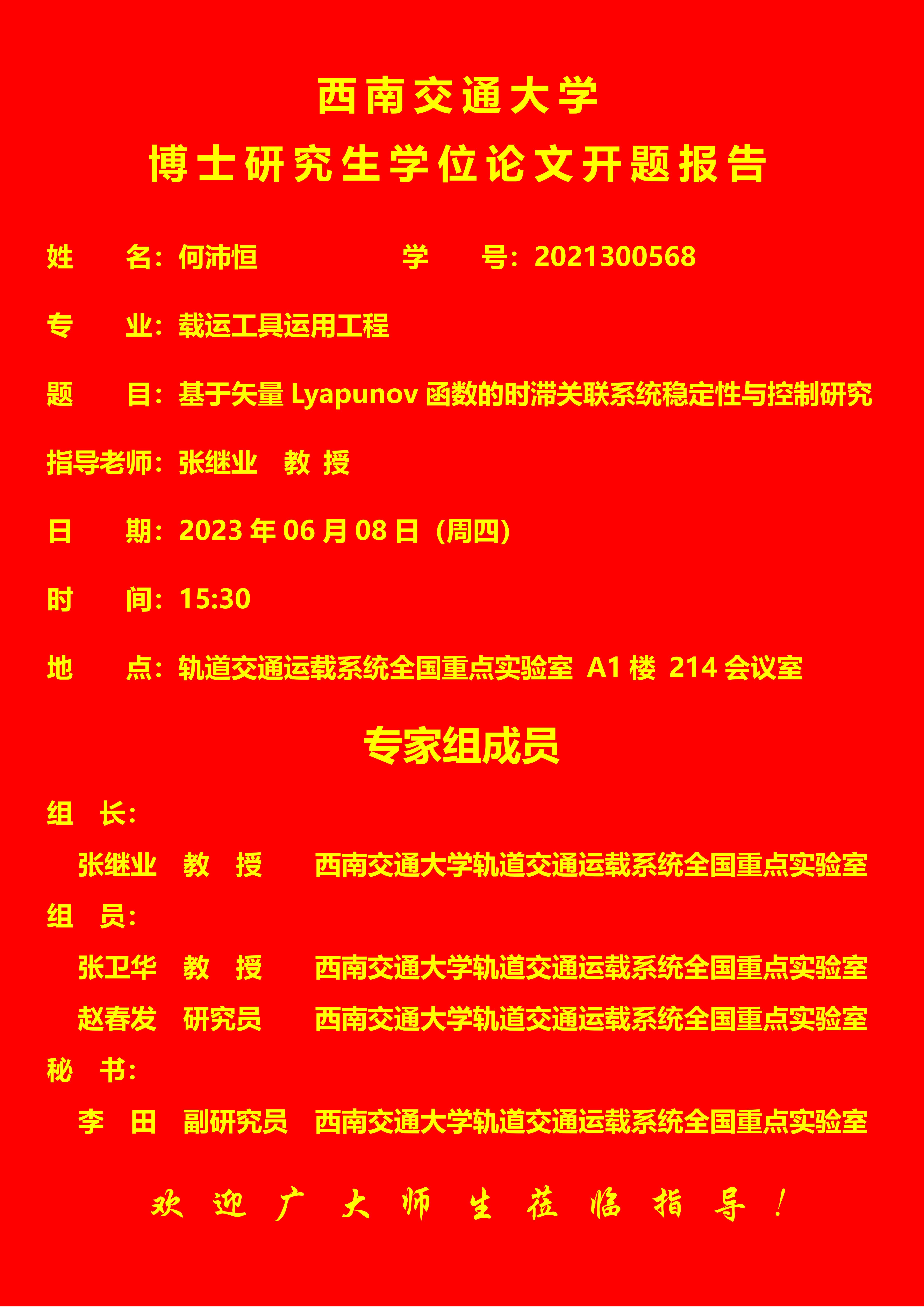 西南交通大学何沛恒博士学位论文开题报告