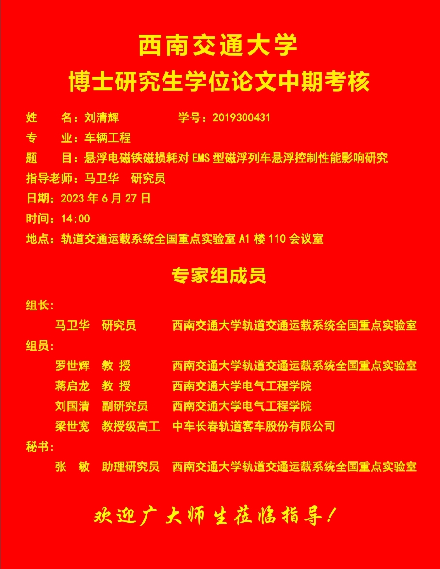 西南交通大学刘清辉博士学位论文中期考核