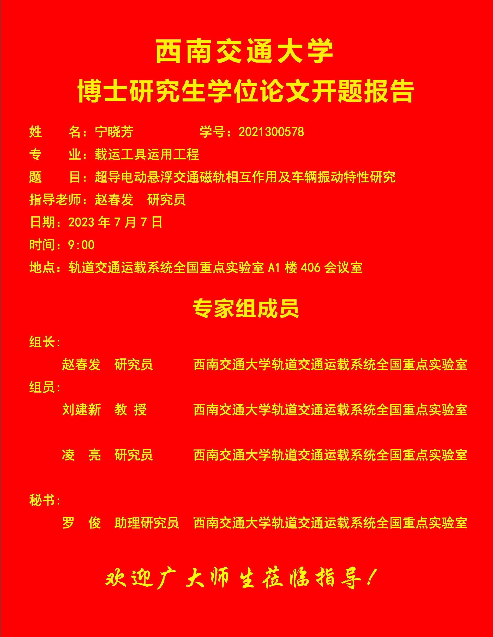 西南交通大学宁晓芳博士研究生学位论文开题报告