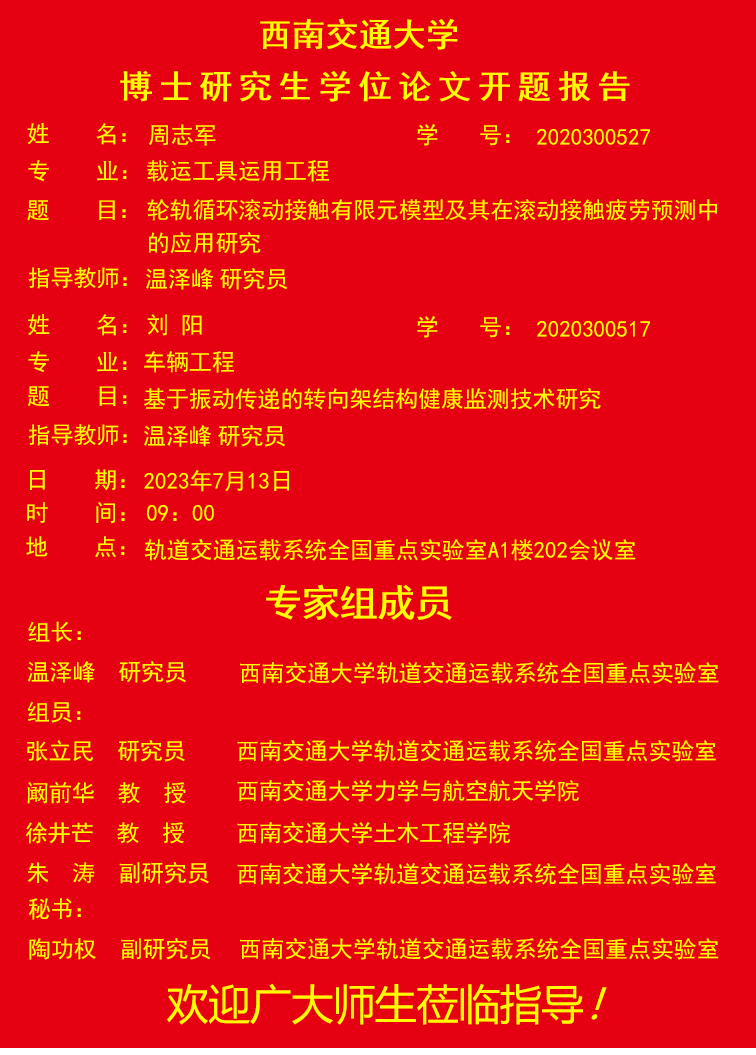 西南交通大学周志军博士、刘阳博士学位论文开题报告