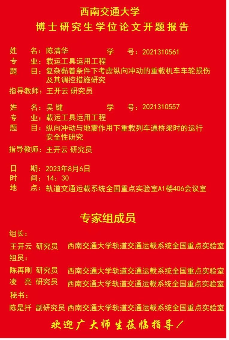 西南交通大学陈清华博士、吴键博士学位论文开题报告