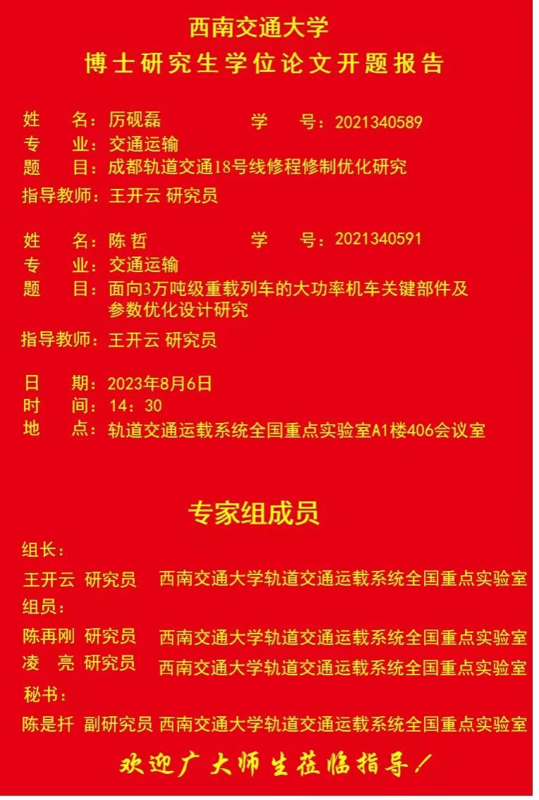 西南交通大学厉砚磊博士、陈哲博士学位论文开题报告