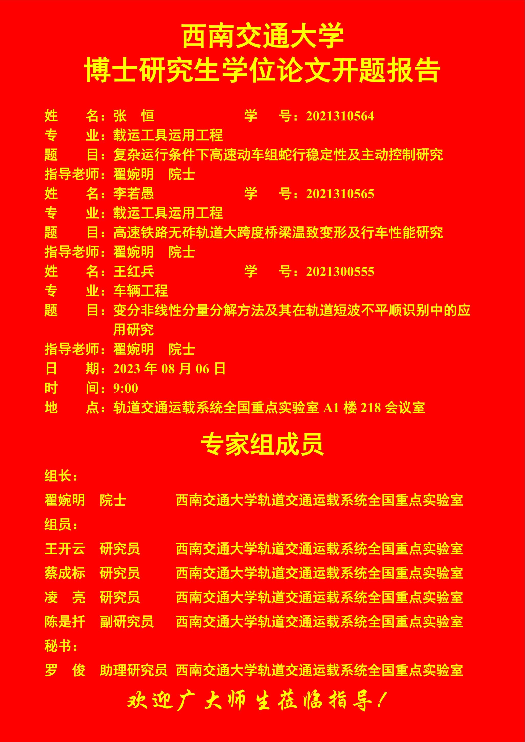 西南交通大学张恒博士、李若愚博士、王红兵博士学位论文开题报告