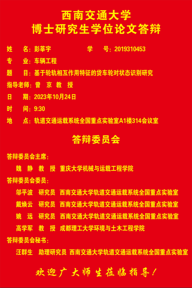 西南交通大学彭莘宇博士研究生学位论文答辩