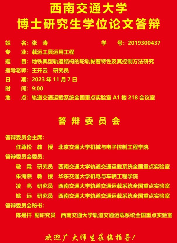 西南交通大学张涛博士研究生学位论文答辩