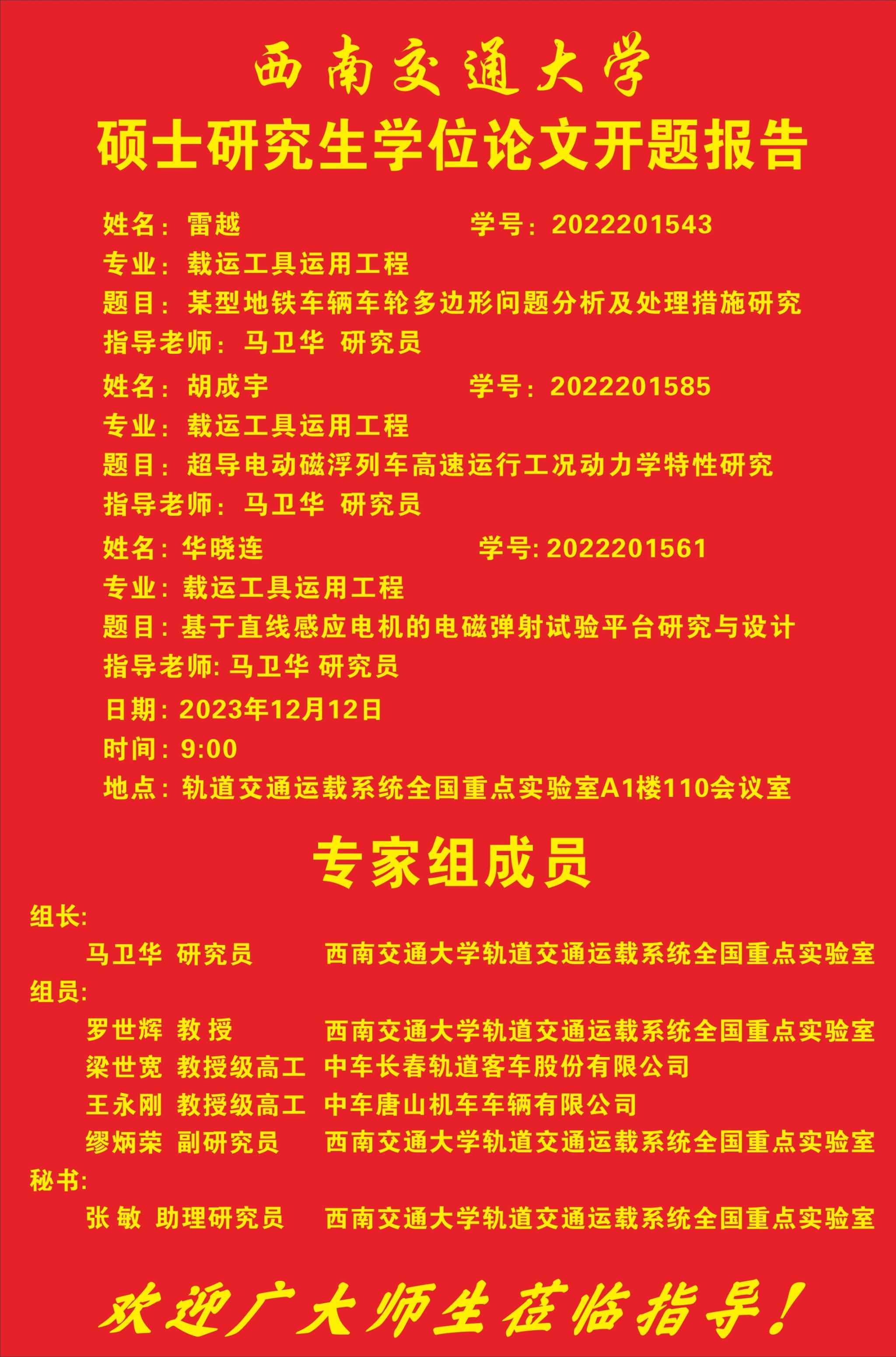 西南交通大学雷越、胡成宇、华晓连硕士研究生开题报告