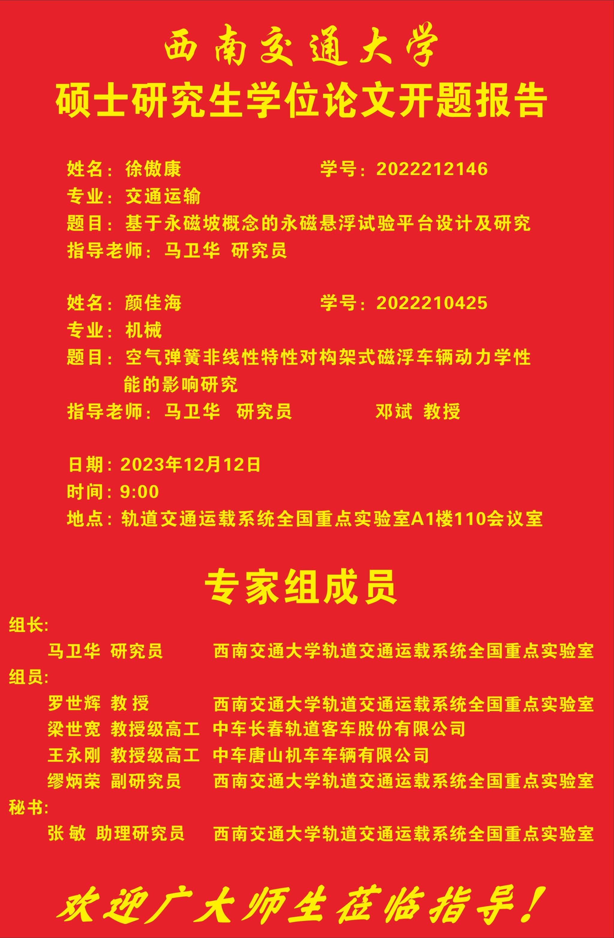 西南交通大学徐傲康、颜佳海硕士研究生开题报告