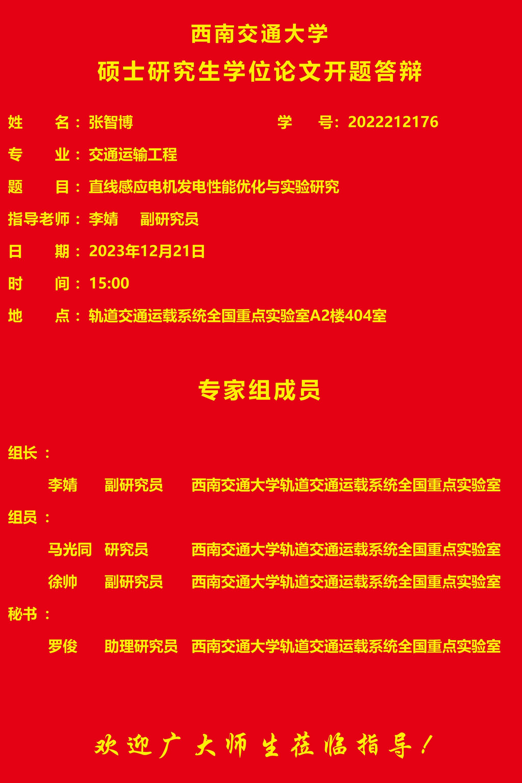 西南交通大学张智博硕士研究生开题报告