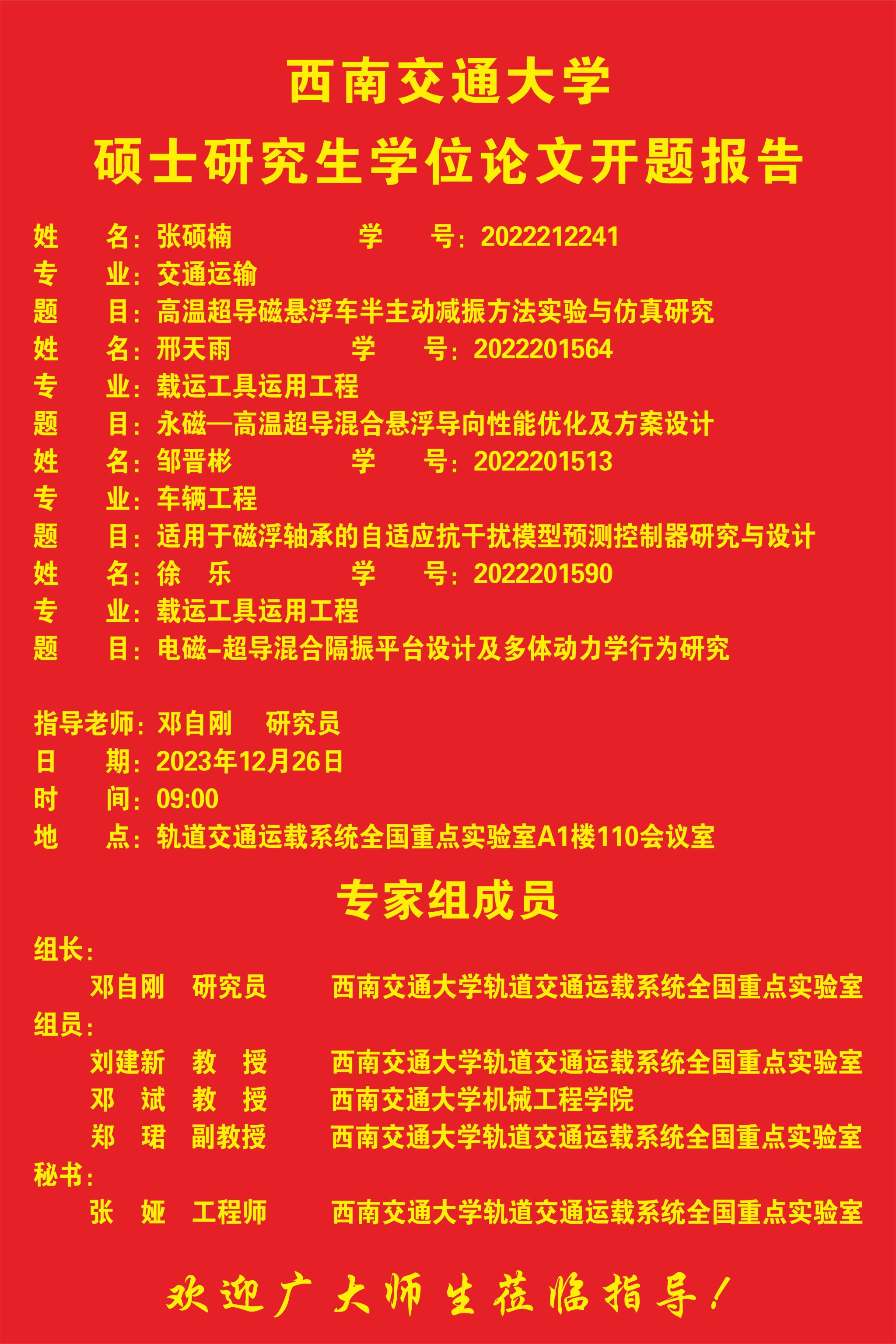 西南交通大学张硕楠、邹晋彬、邢天雨、徐乐硕士研究生开题报告