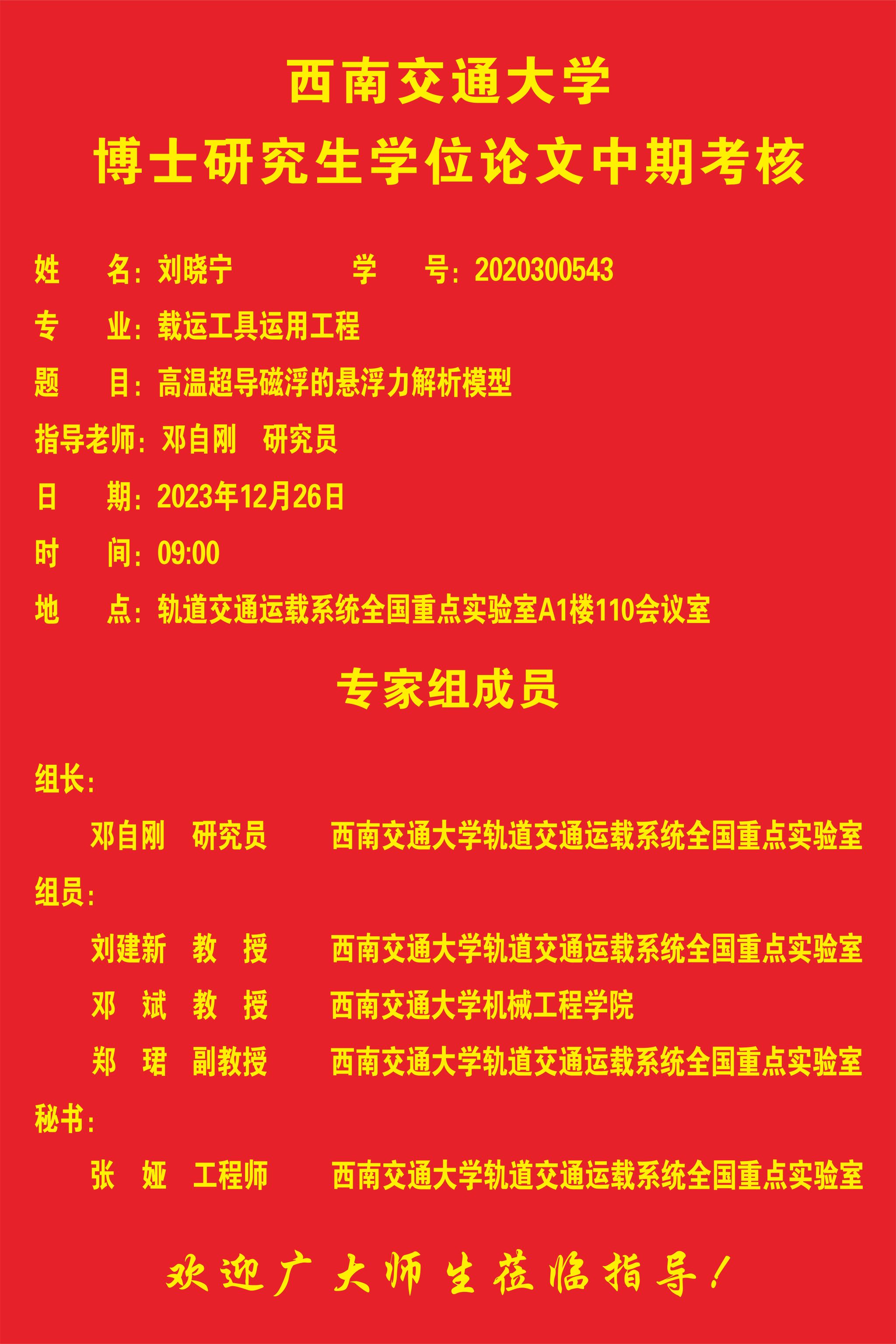 西南交通大学刘晓宁博士学位论文中期考核
