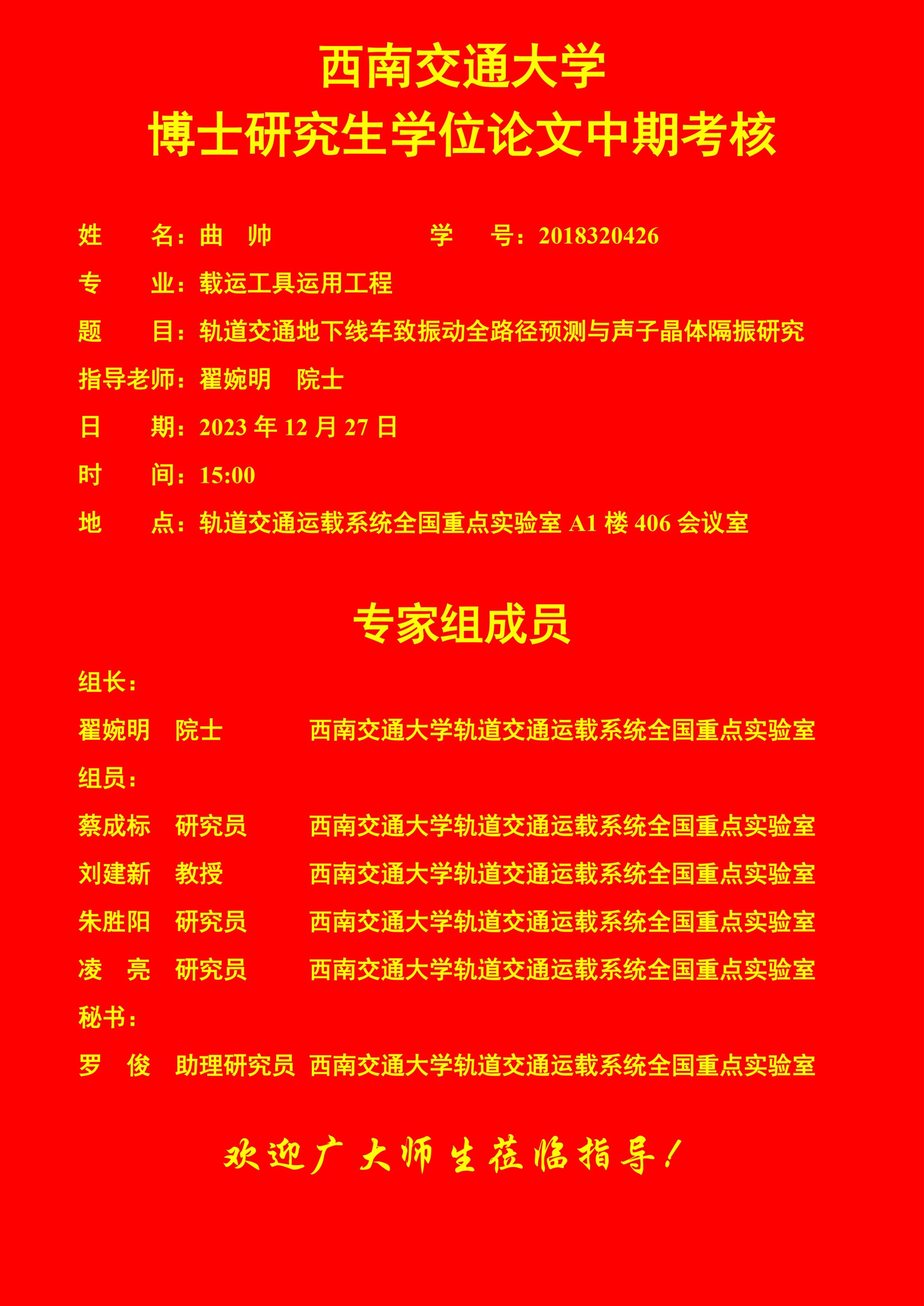 西南交通大学曲帅博士学位论文中期考核