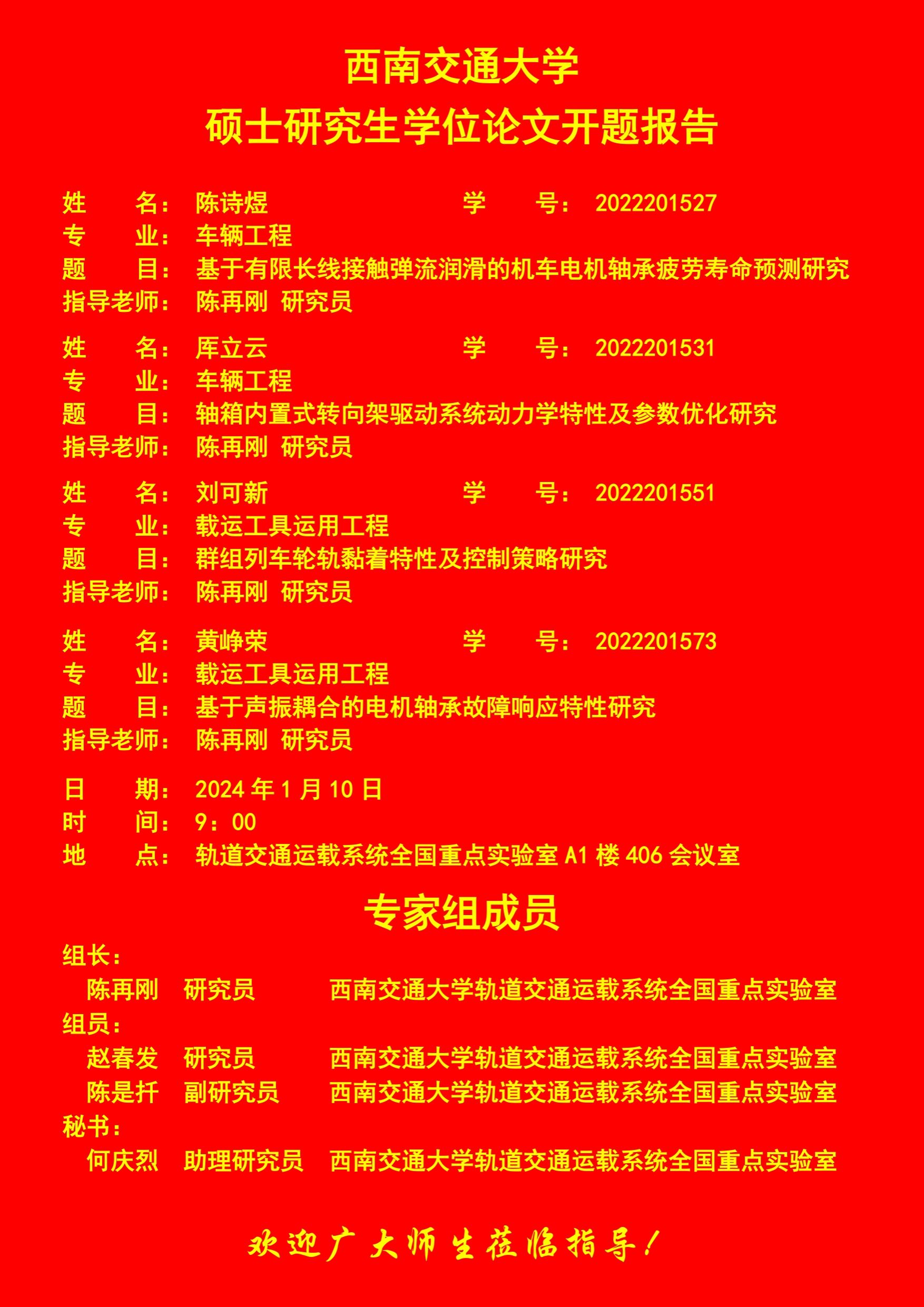 西南交通大学陈诗煜、厍立云、刘可新、黄峥荣硕士研究生开题报告