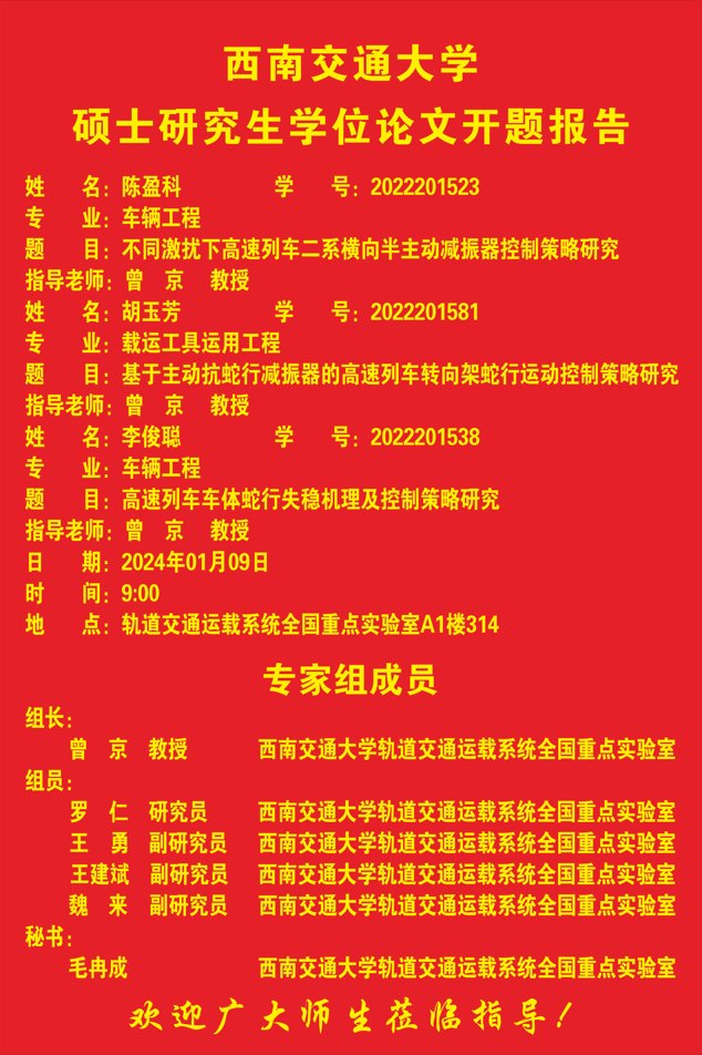 西南交通大学陈盈科、胡玉芳、李俊聪硕士研究生开题报告