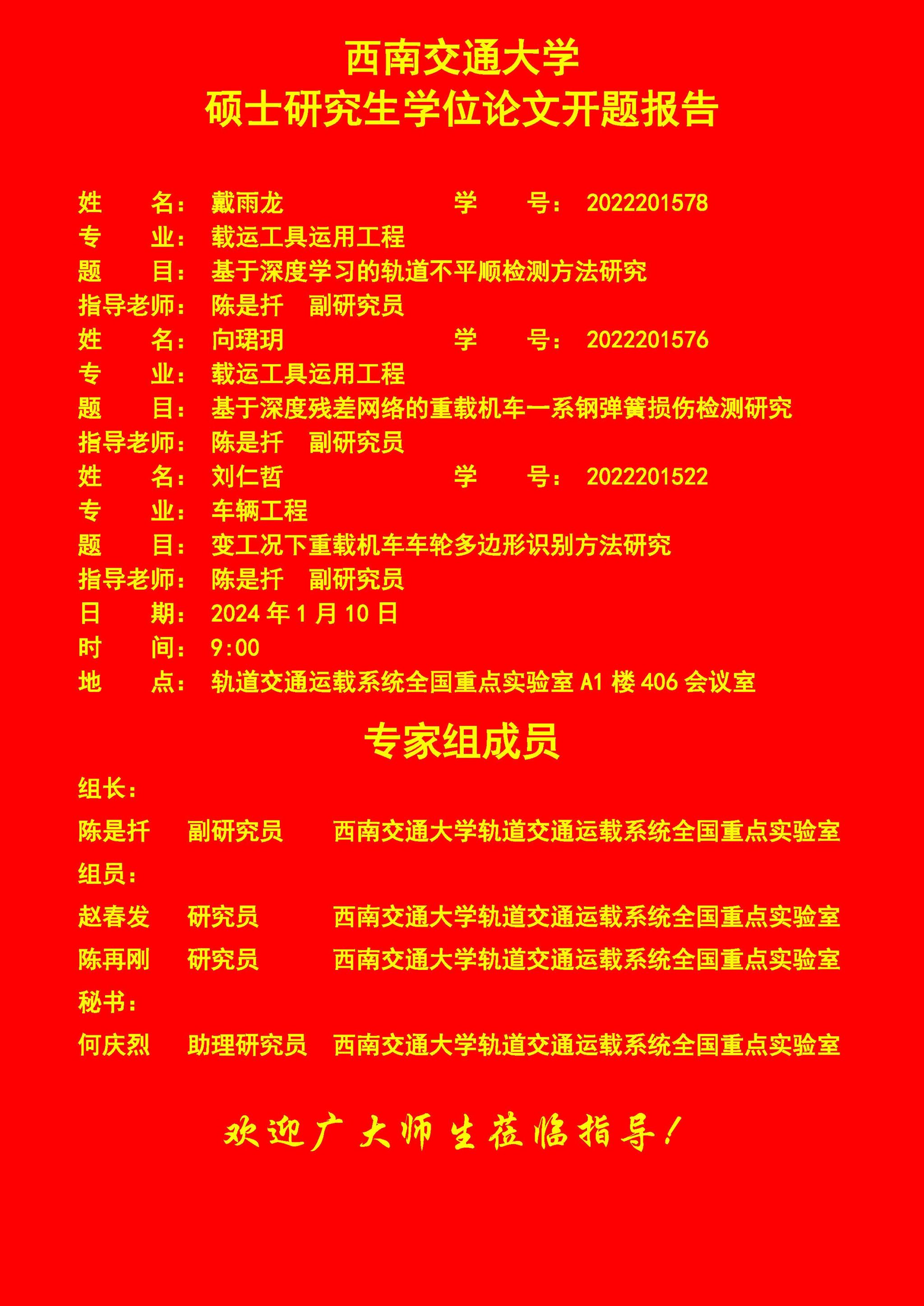 西南交通大学戴雨龙、向珺玥、刘仁哲硕士研究生开题报告