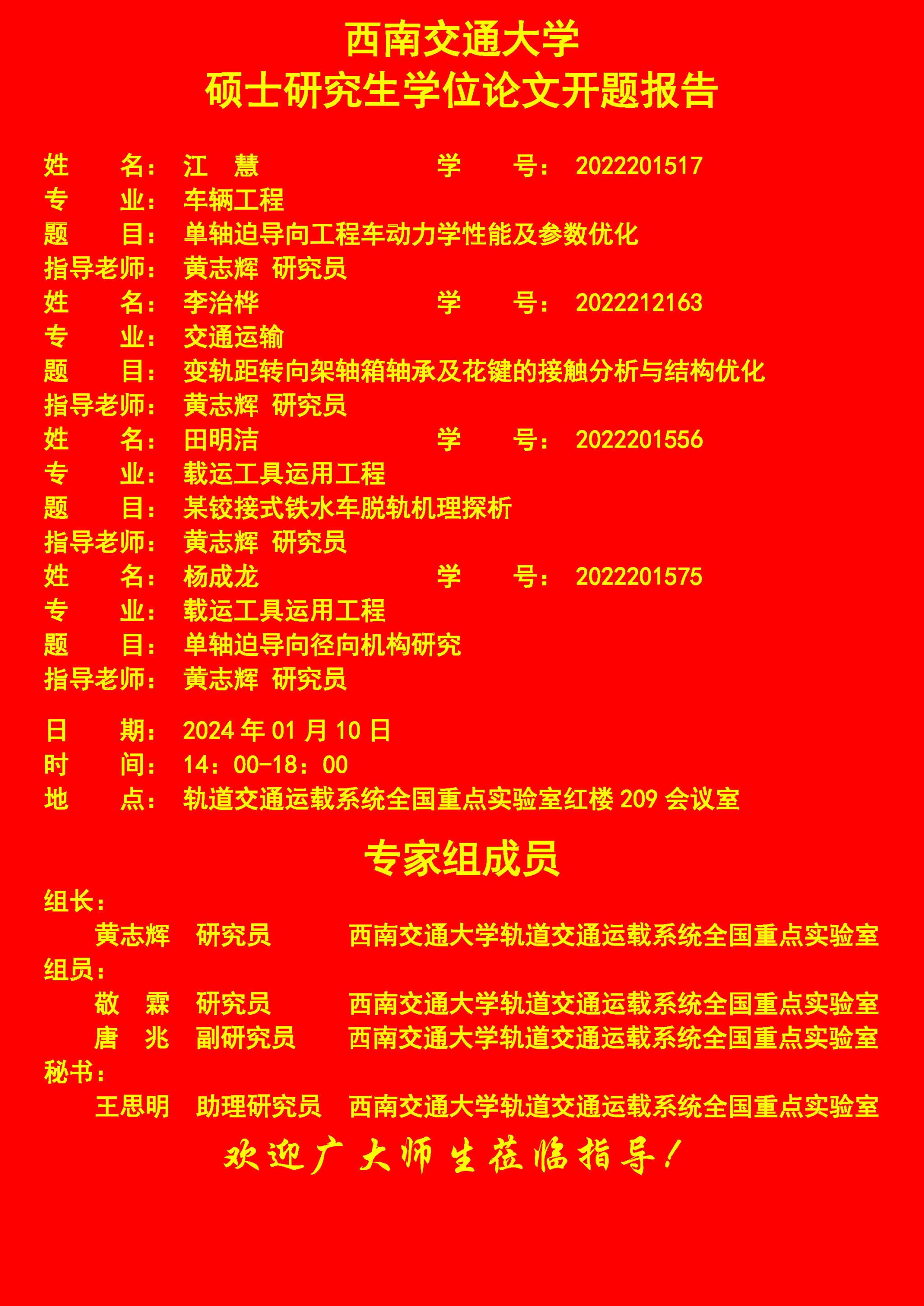 西南交通大学江慧、李治桦、田明洁、杨成龙硕士研究生开题报告