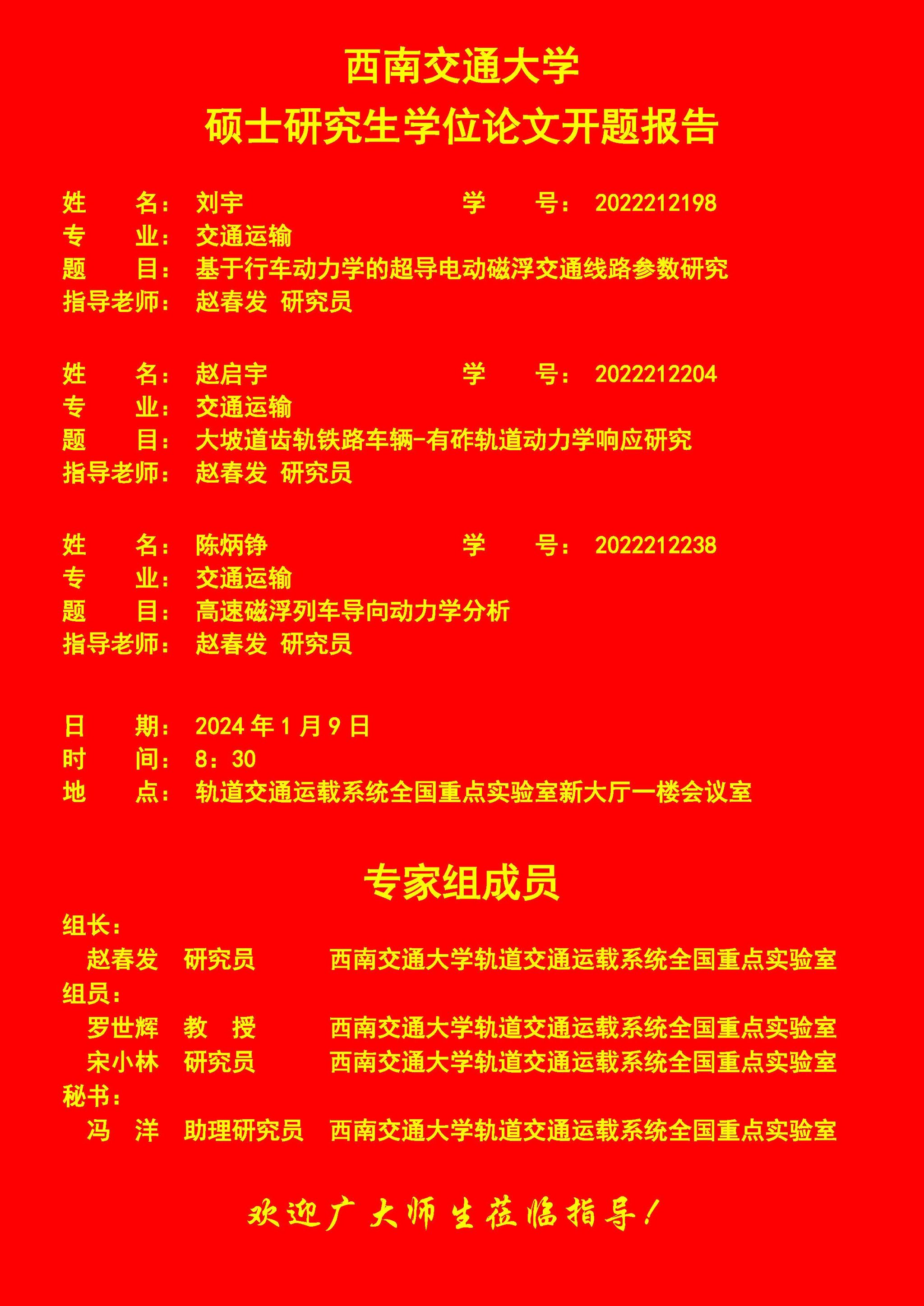 西南交通大学刘宇、赵启宇、陈炳铮硕士研究生开题报告