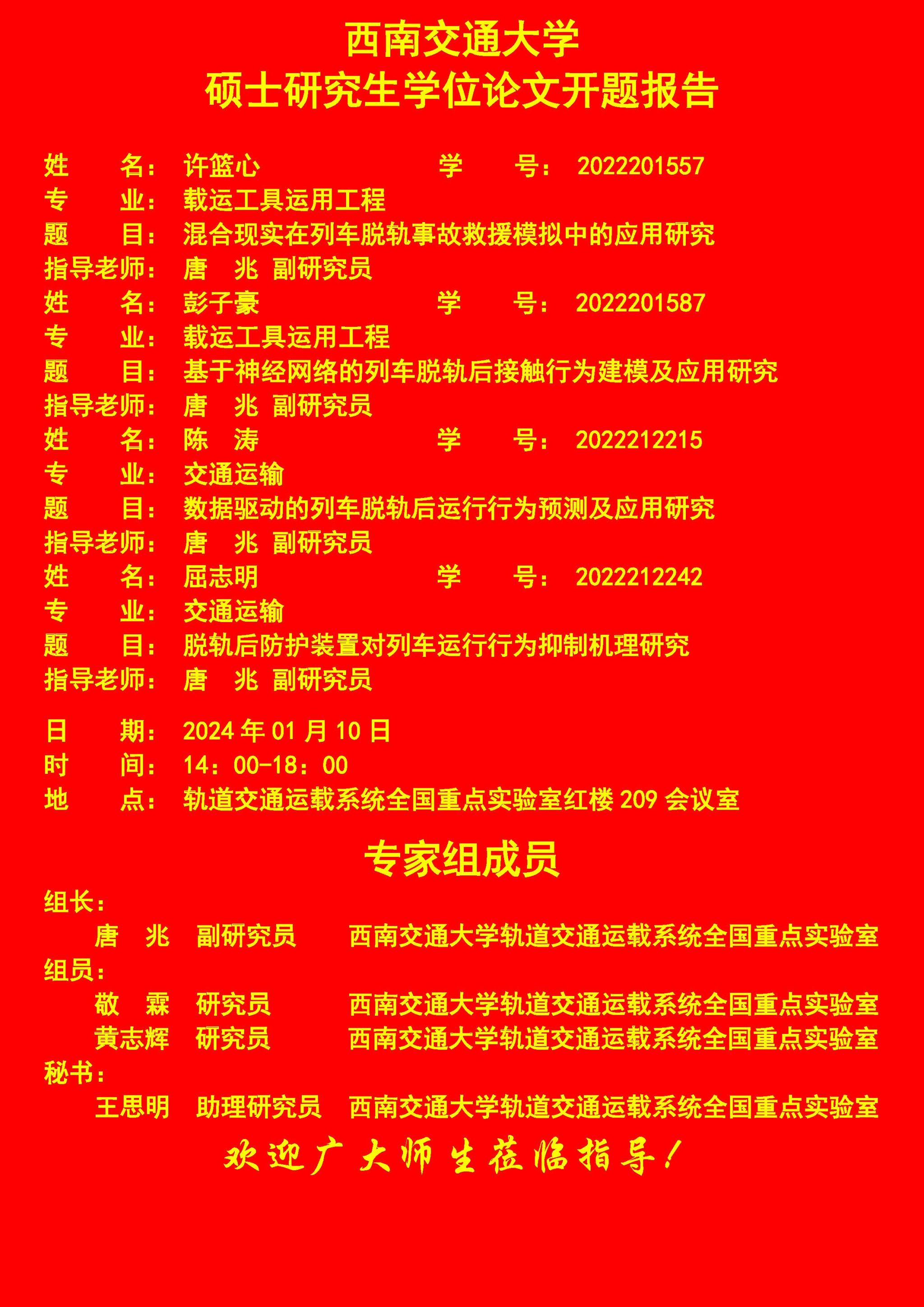 西南交通大学许篮心、彭子豪、陈涛、屈志明硕士研究生开题报告