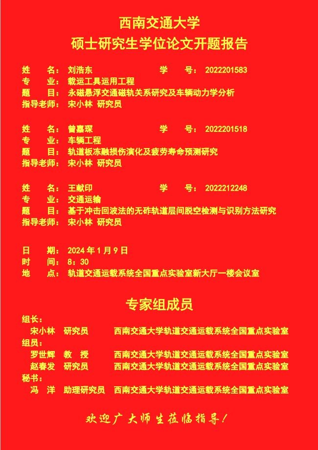 西南交通大学刘浩东、曾嘉琛、王献印硕士研究生开题报告