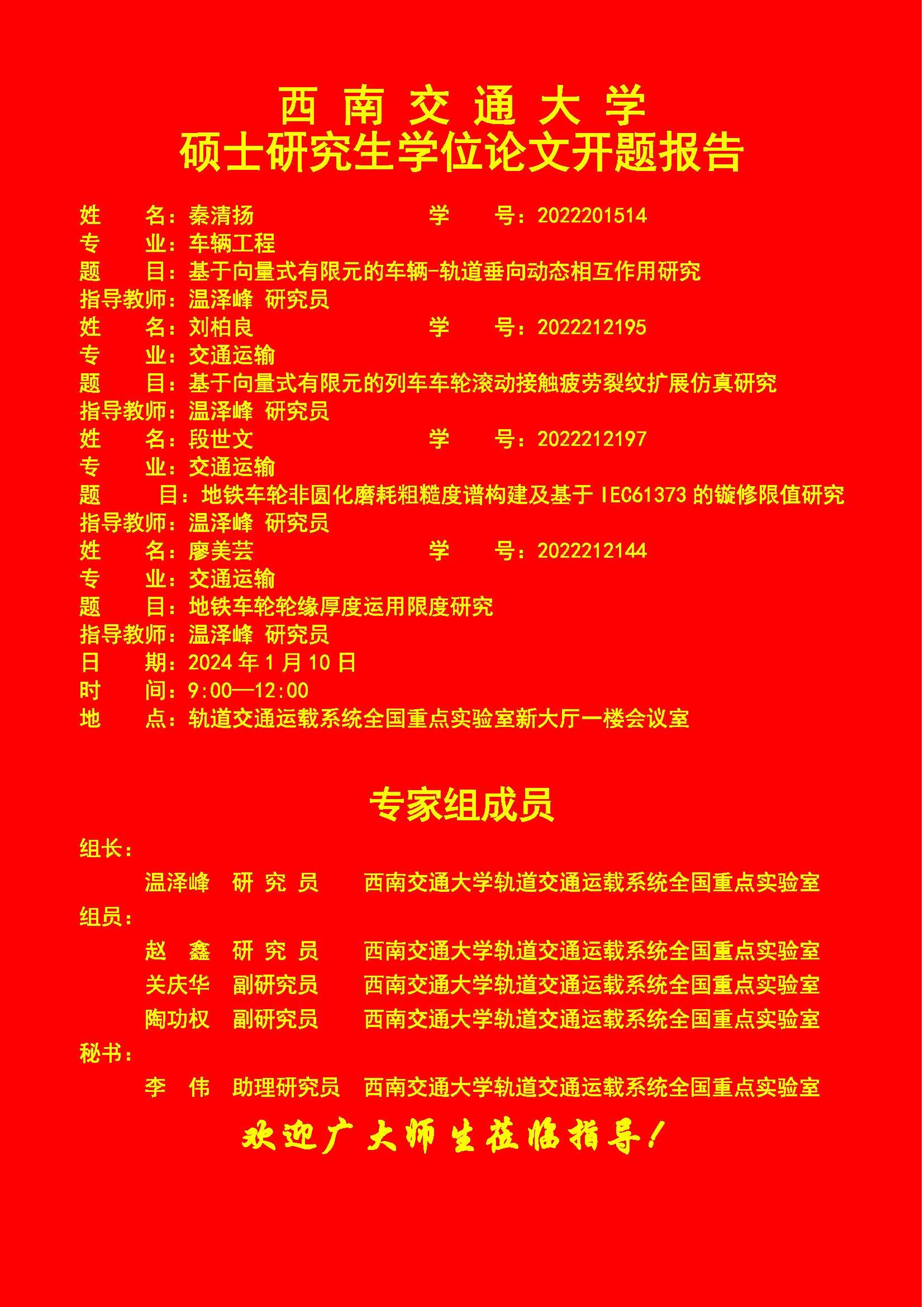 西南交通大学秦清扬、刘柏良、段世文、廖美芸硕士研究生开题报告