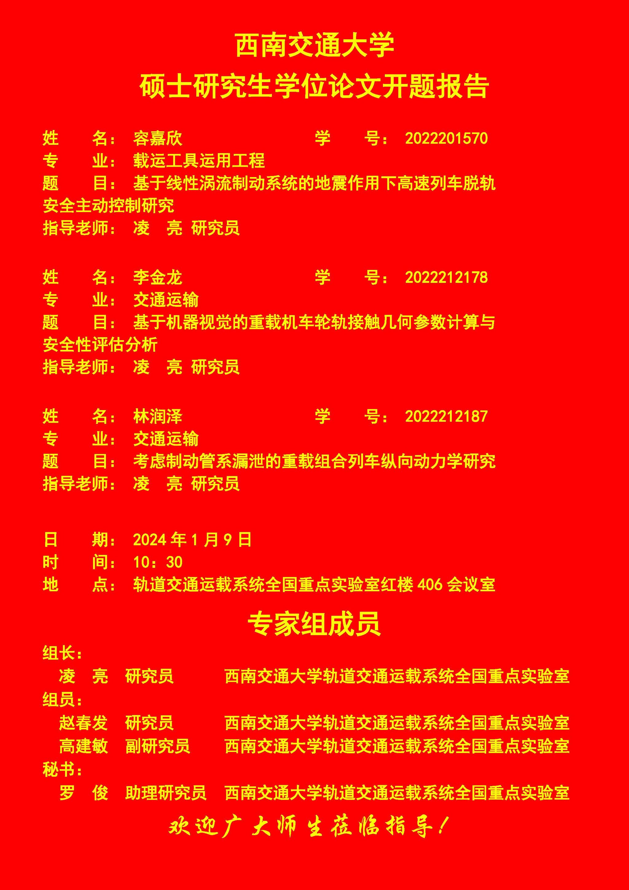 西南交通大学容嘉欣、李金龙、林润泽硕士研究生开题报告
