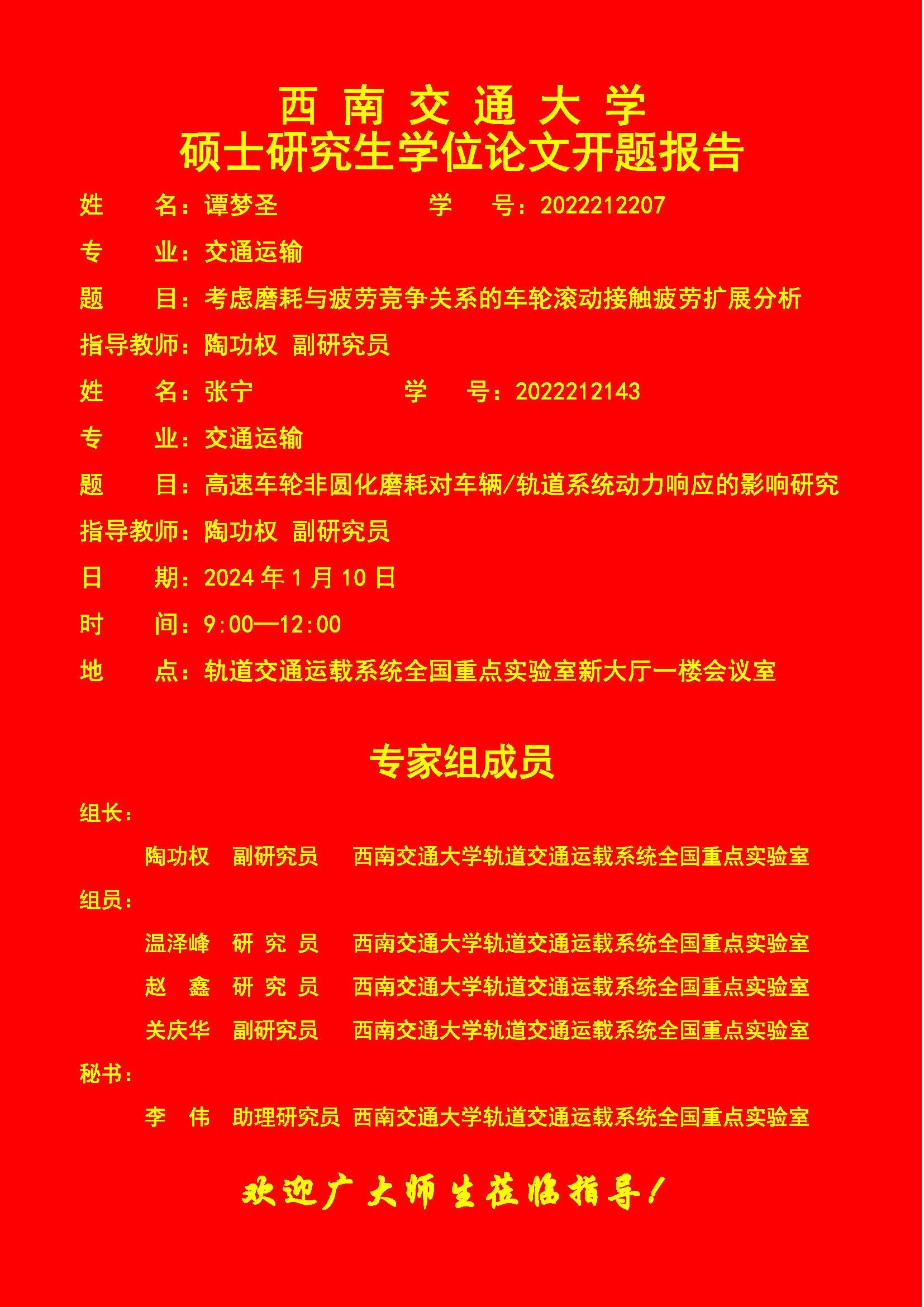 西南交通大学谭梦圣、张宁硕士研究生开题报告
