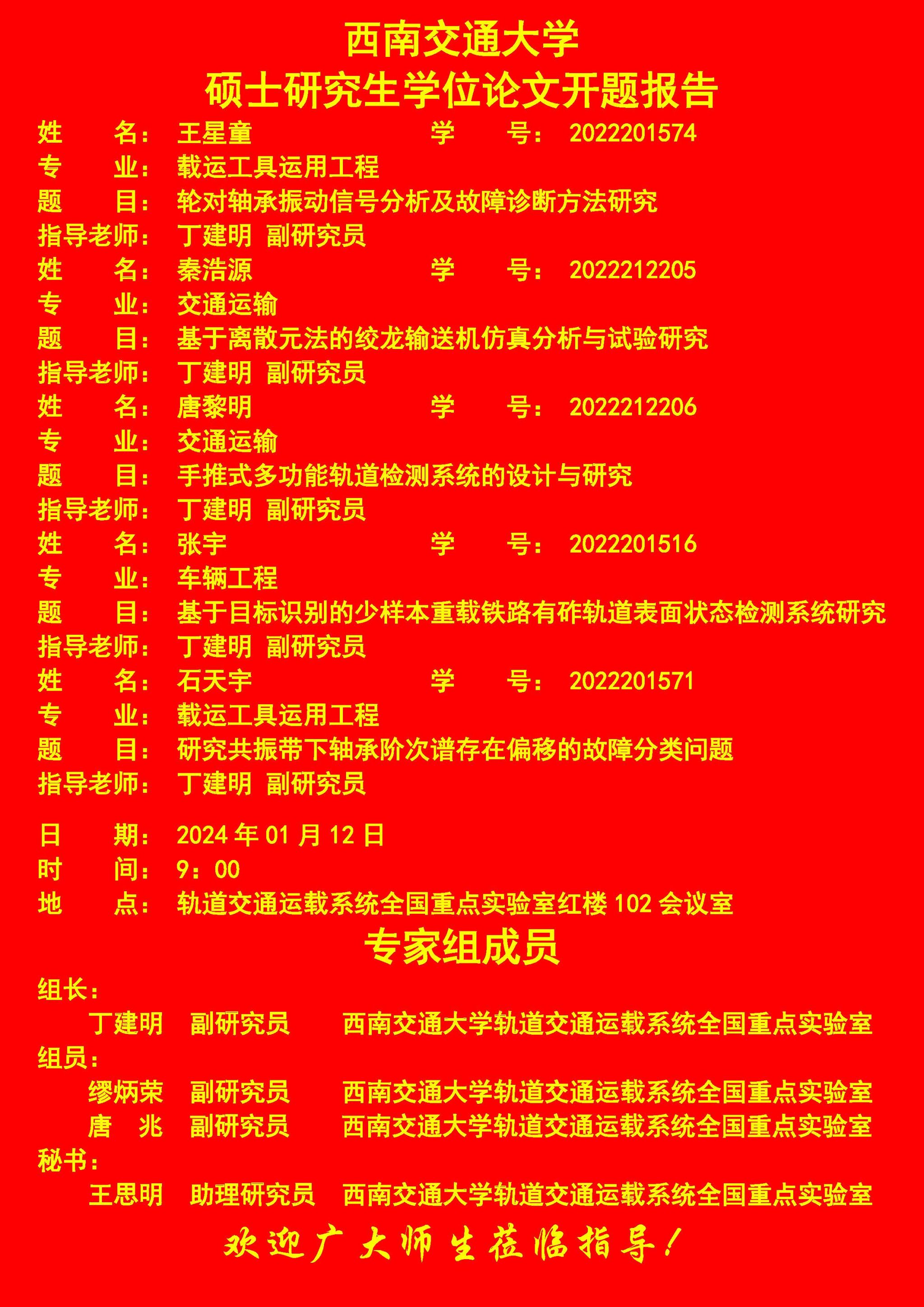 西南交通大学王星童、秦浩源、唐黎明、张宇、石天宇硕士研究生开题报告