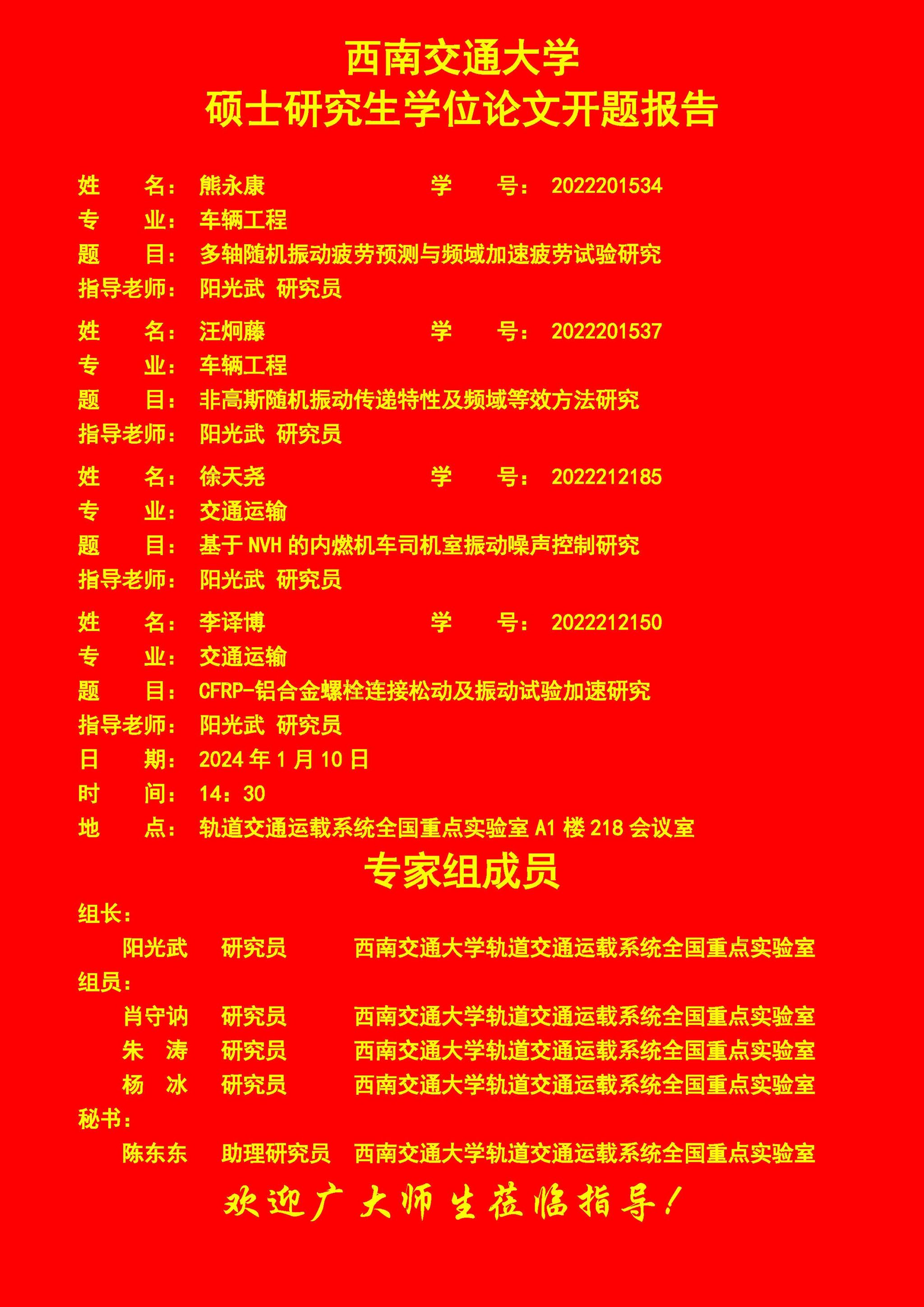西南交通大学熊永康、汪炯藤、徐天尧、李译博硕士研究生开题报告
