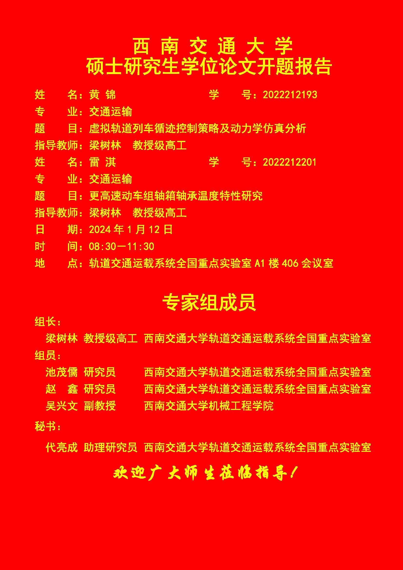 西南交通大学黄锦、雷淇硕士研究生开题报告
