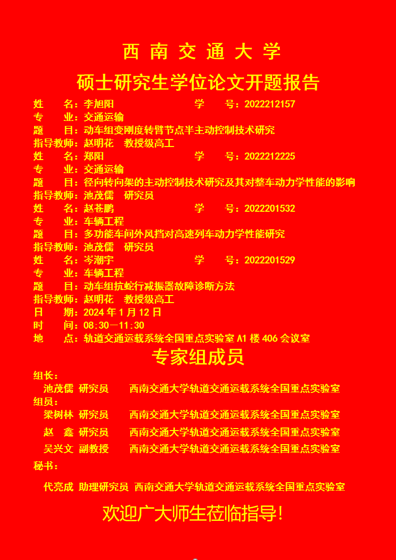 西南交通大学李旭阳、郑阳、赵苍鹏、岑潮宇硕士研究生开题报告