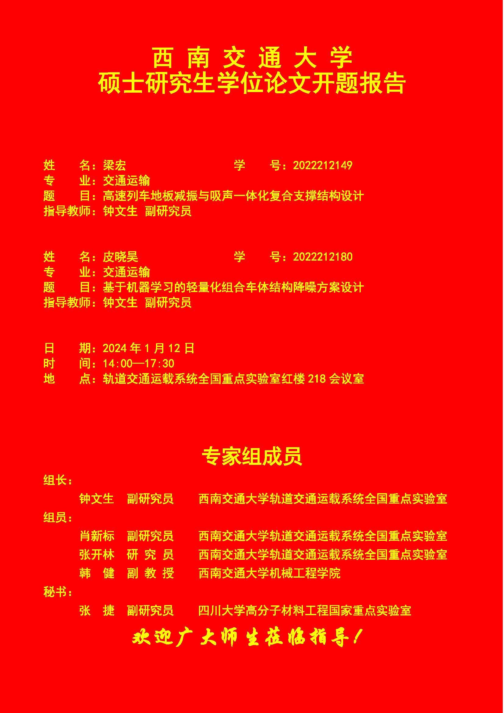 西南交通大学梁宏、皮晓昊硕士研究生开题报告