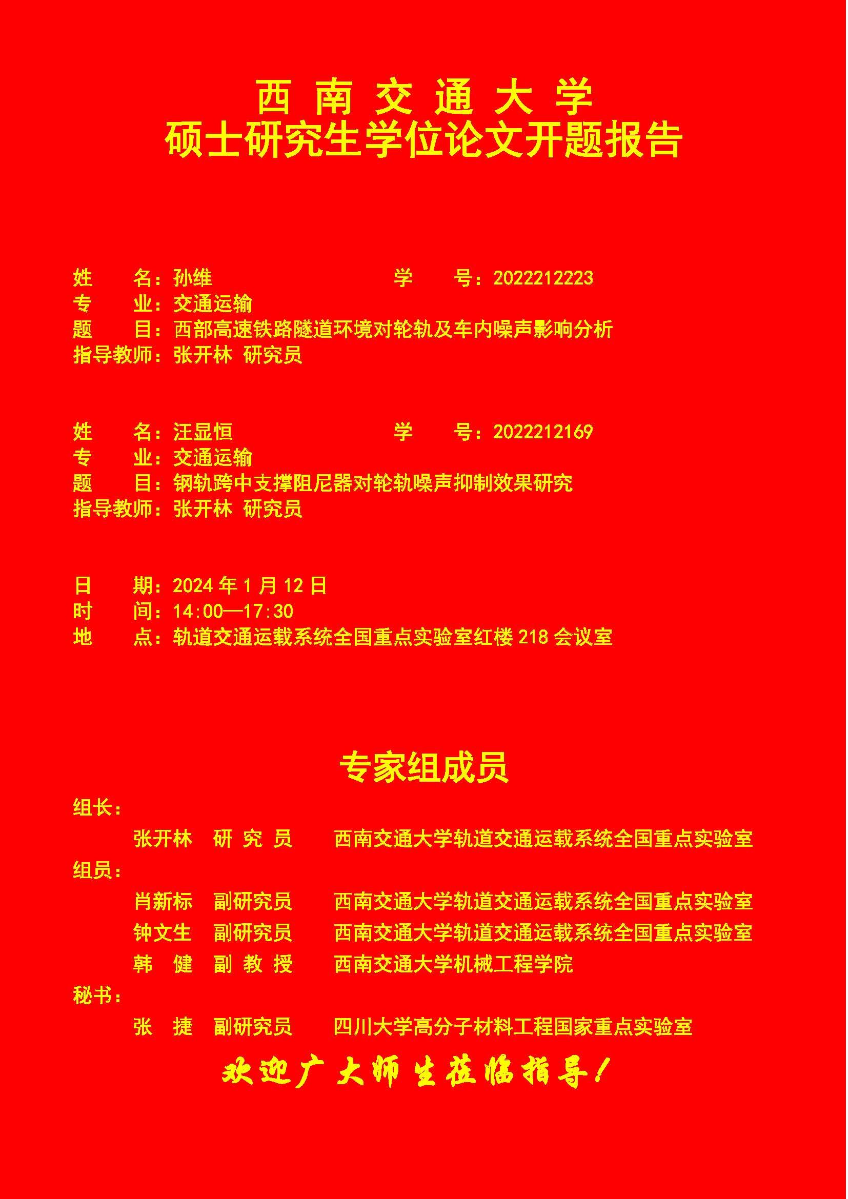 西南交通大学孙维、汪显恒硕士研究生开题报告