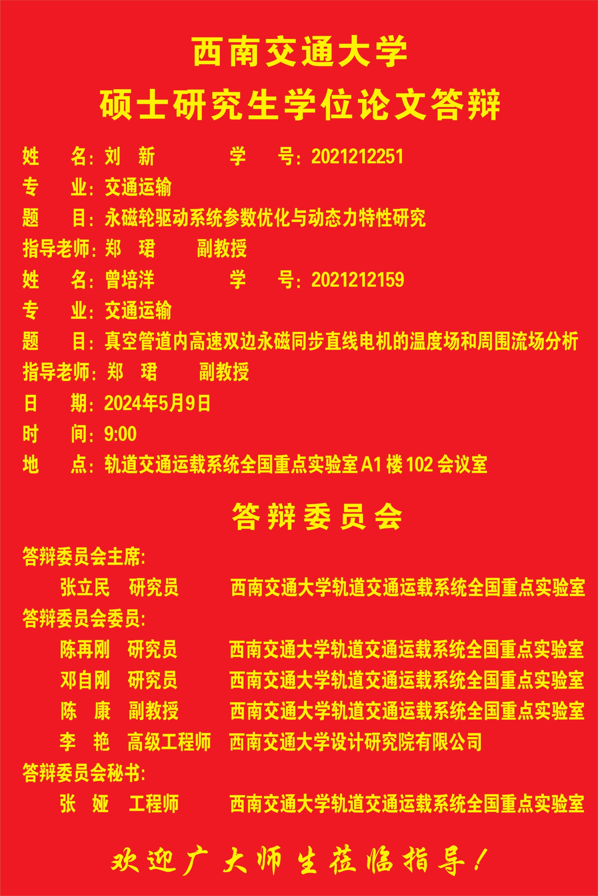 西南交通大学刘新、曾培洋硕士学位论文答辩